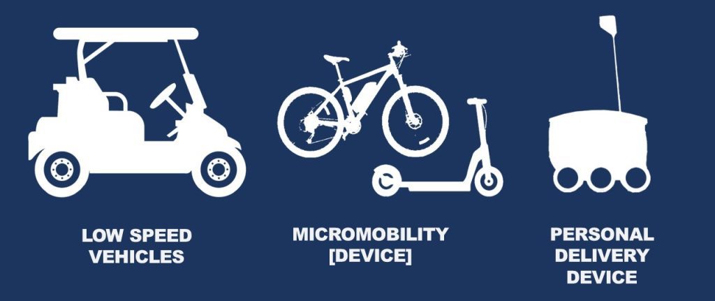 What qualifies as micromobility? Vehicles that fall into the category of personal mobility devices are low-speed vehicles, micromobility and personal delivery devices.The National Highway Transportation Safety Administration (NHTSA) defines a low-speed vehicle as being:
