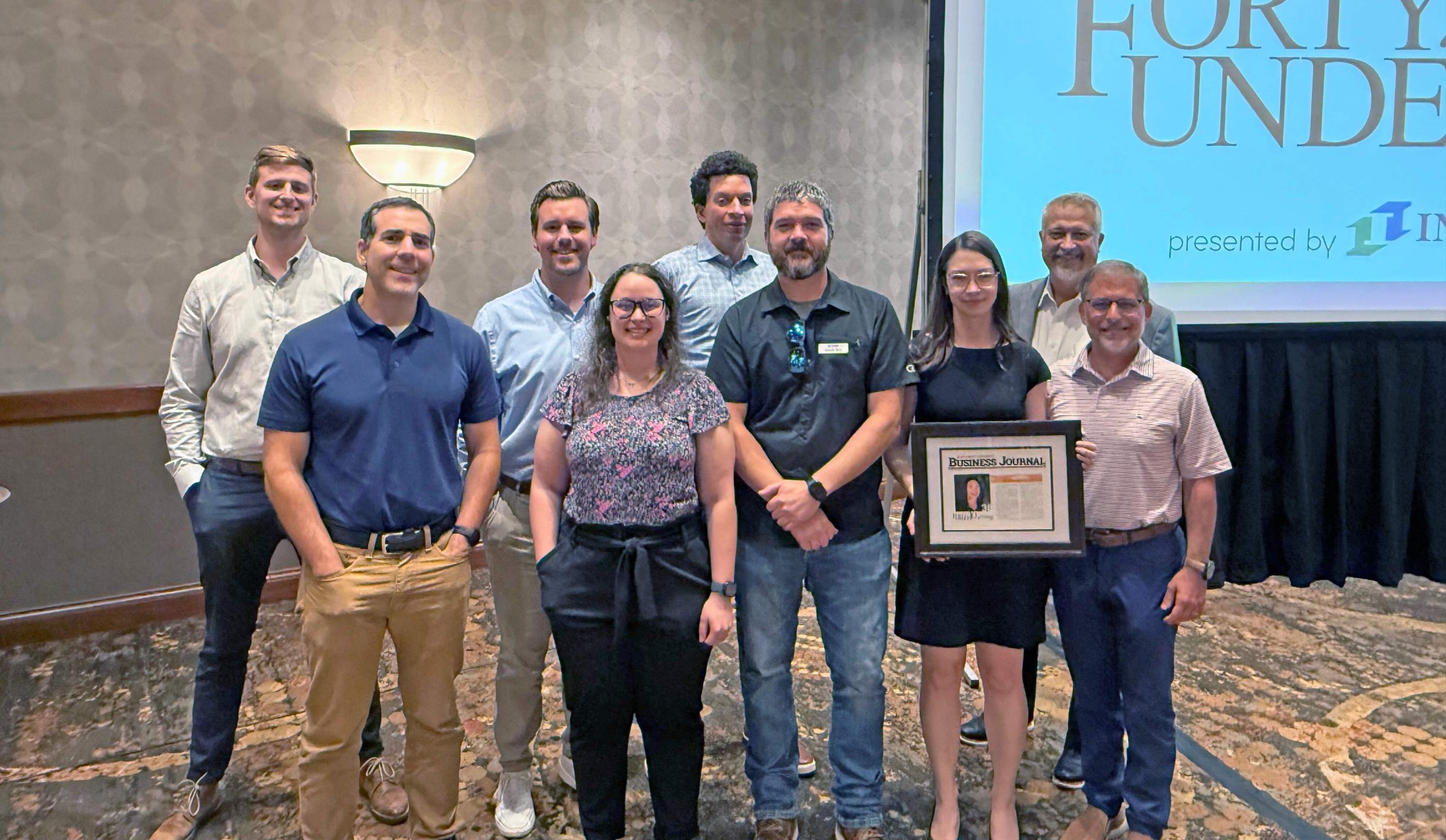 Ashley Pifer was honored during the Forty Under 40 awards luncheon with colleagues from Halff’s Fayetteville office.